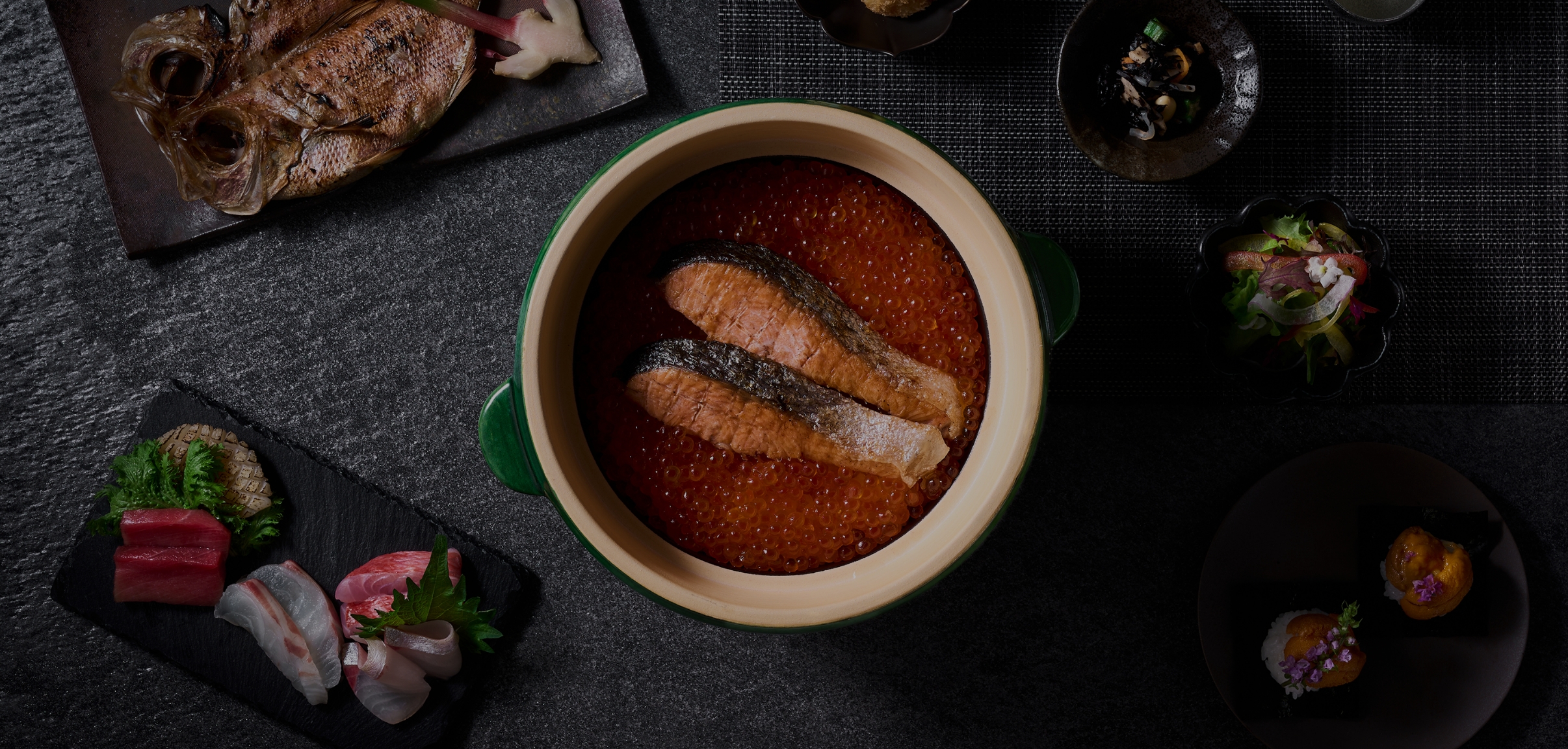 真摯に和食の道を歩み続け、四半世紀。ミシュランの星付き店で腕を磨いた井上知道が、その技や感性、心意気の全てを注ぎ込む舞台が「OMOYA」です。主役は、”お米”。昼は、炊き立て土鍋ごはんの奥深き味わいを定食で。夜は、技巧を凝らした酒肴が、お米の繊細な表情をひとつずつ引き出します。伝統のさらに一歩先を行く、お米の物語をご堪能ください。